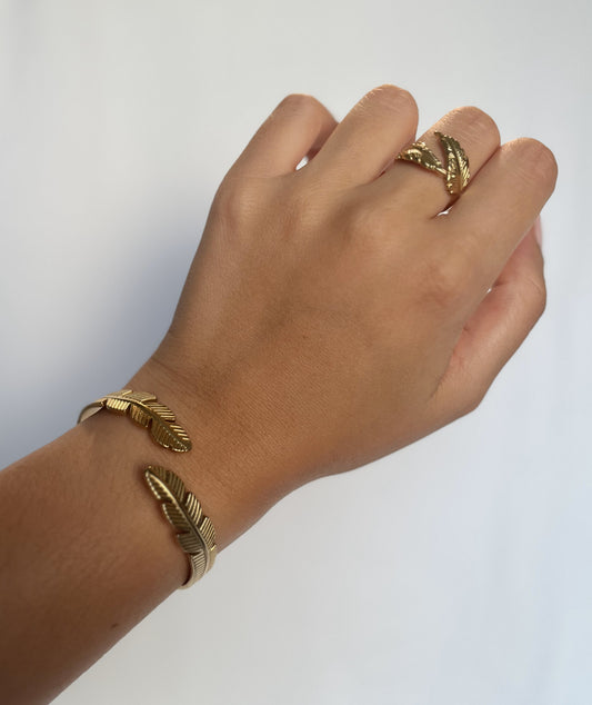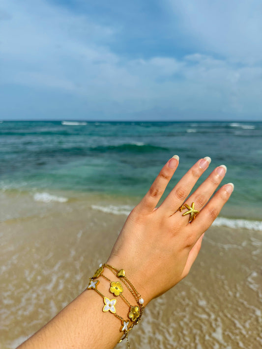 from 6 reviewsLos detalles texturizados en los laterales le añaden un toque artesanal y único. Ideal para quienes buscan un accesorio que destaque y complemente tanto atuendos formales como casuales.Su diseño abierto resalta con una flor de cinco pétalos en color negro brillante, creando un contraste sofisticado con el acabado dorado.